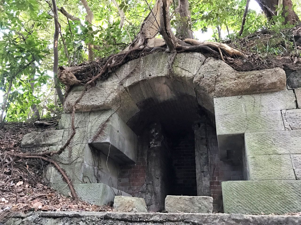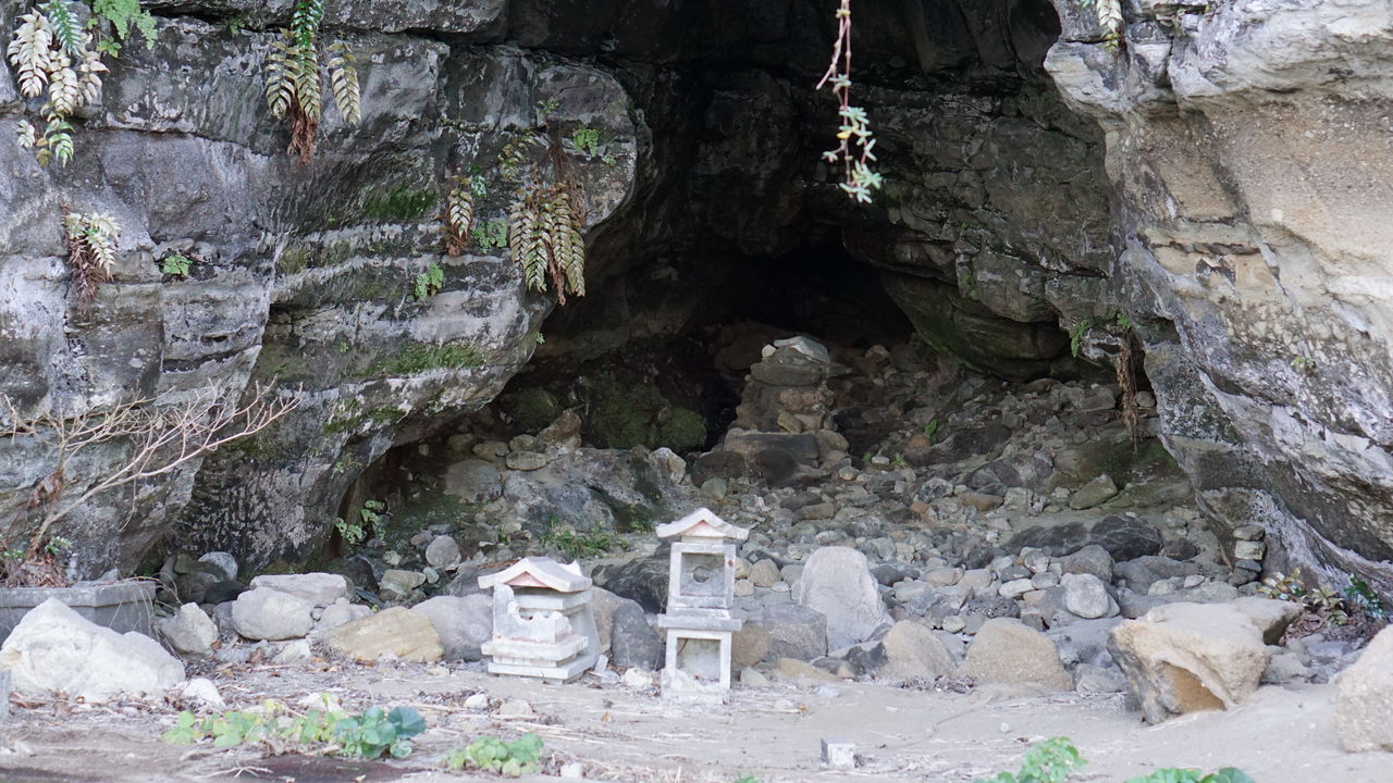 歩いていると、奇妙な洞穴?