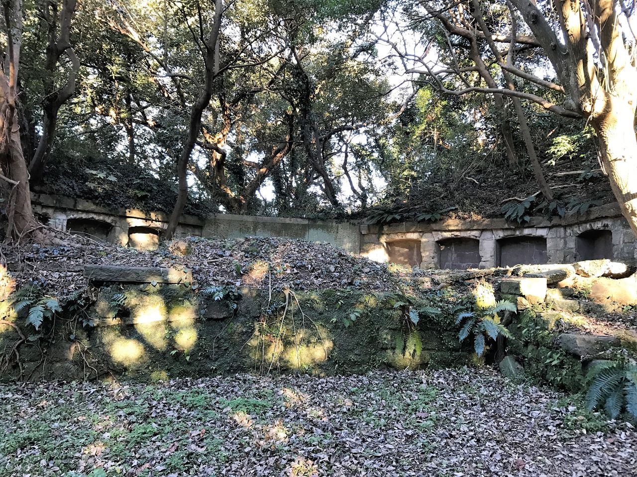 暗ーいトンネルを抜けた先には、高台と砲台跡がありました。