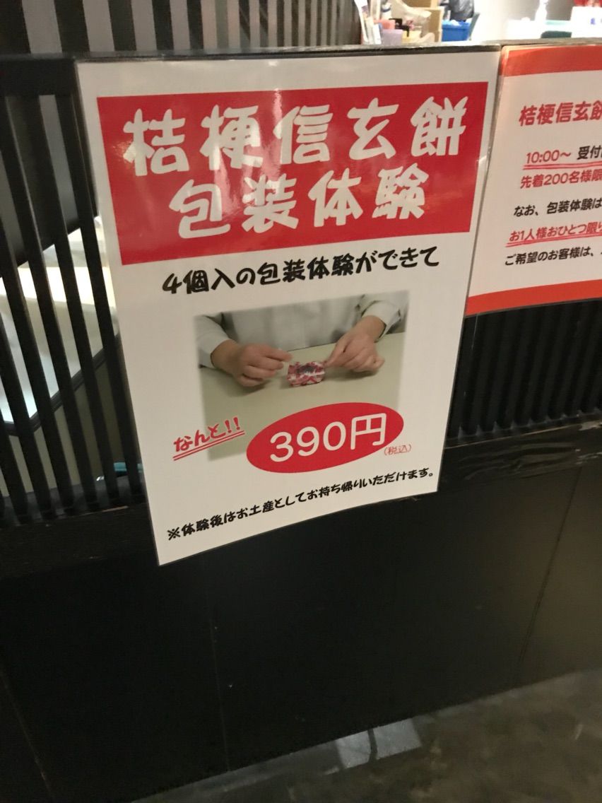 信玄餅の包装体験もできて、お買い得とは。