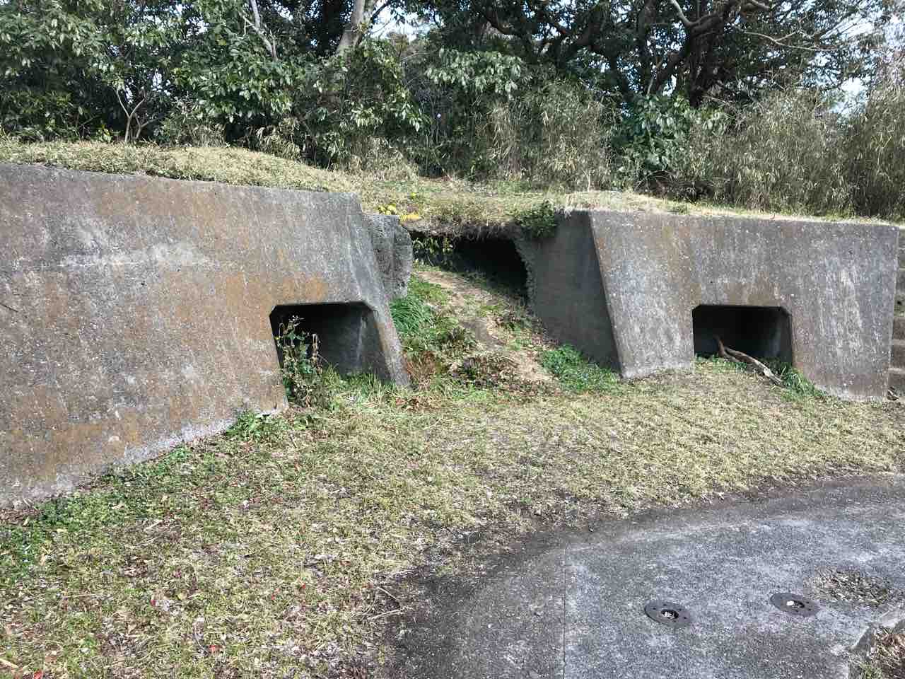 三浦富士から武山に続くハイキングコース上にある大塚山は、昭和初期に海軍が砲台を造ったことから、砲台山と呼ばれるようになりました。山頂には、金網で囲まれた海上保安庁の武山受信所があり、パラボラアンテナがそびえています。その横に、すり鉢状の砲台跡が今もきれいに残されています。すり鉢の中央には、かつて高角砲が据えられていました。側面に開けられた8個の四角い穴は、弾薬の格納庫と思われます。