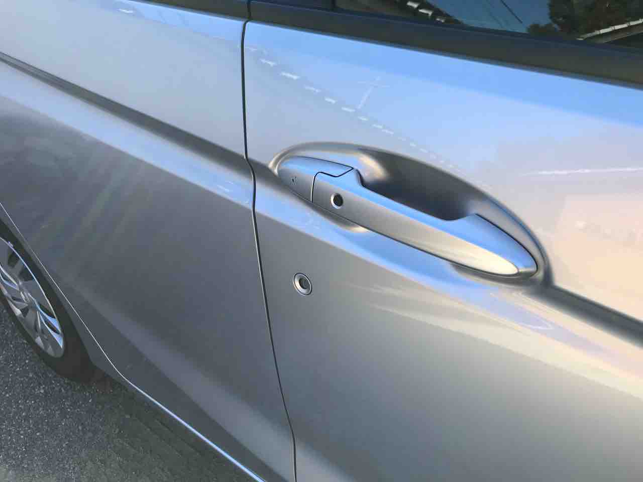 ドアを開けるにはトヨタ車と同じようにドアノブを触るだけ、そしてドアを閉めるときは灰色のボタンを押すと施錠されます。