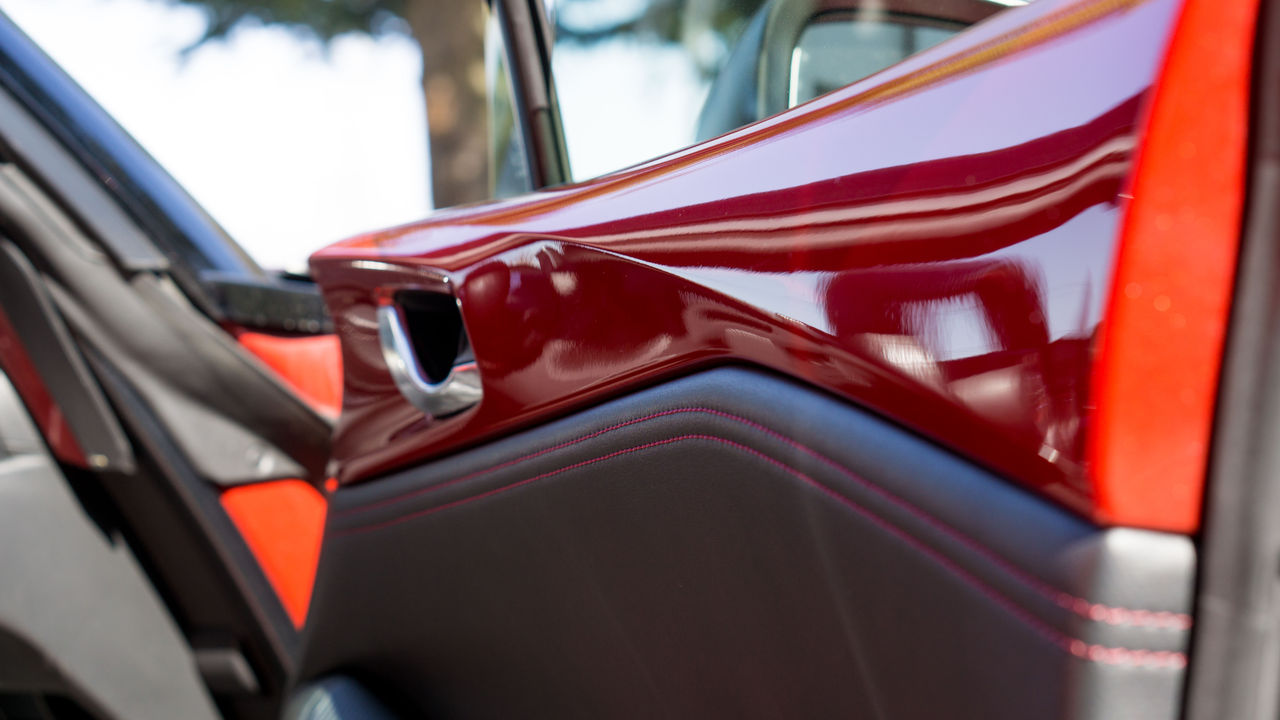 ドアのソウルレッド部分にわずかな太陽光が当たることで、さっきまでと違う艶めかしい色合いに。