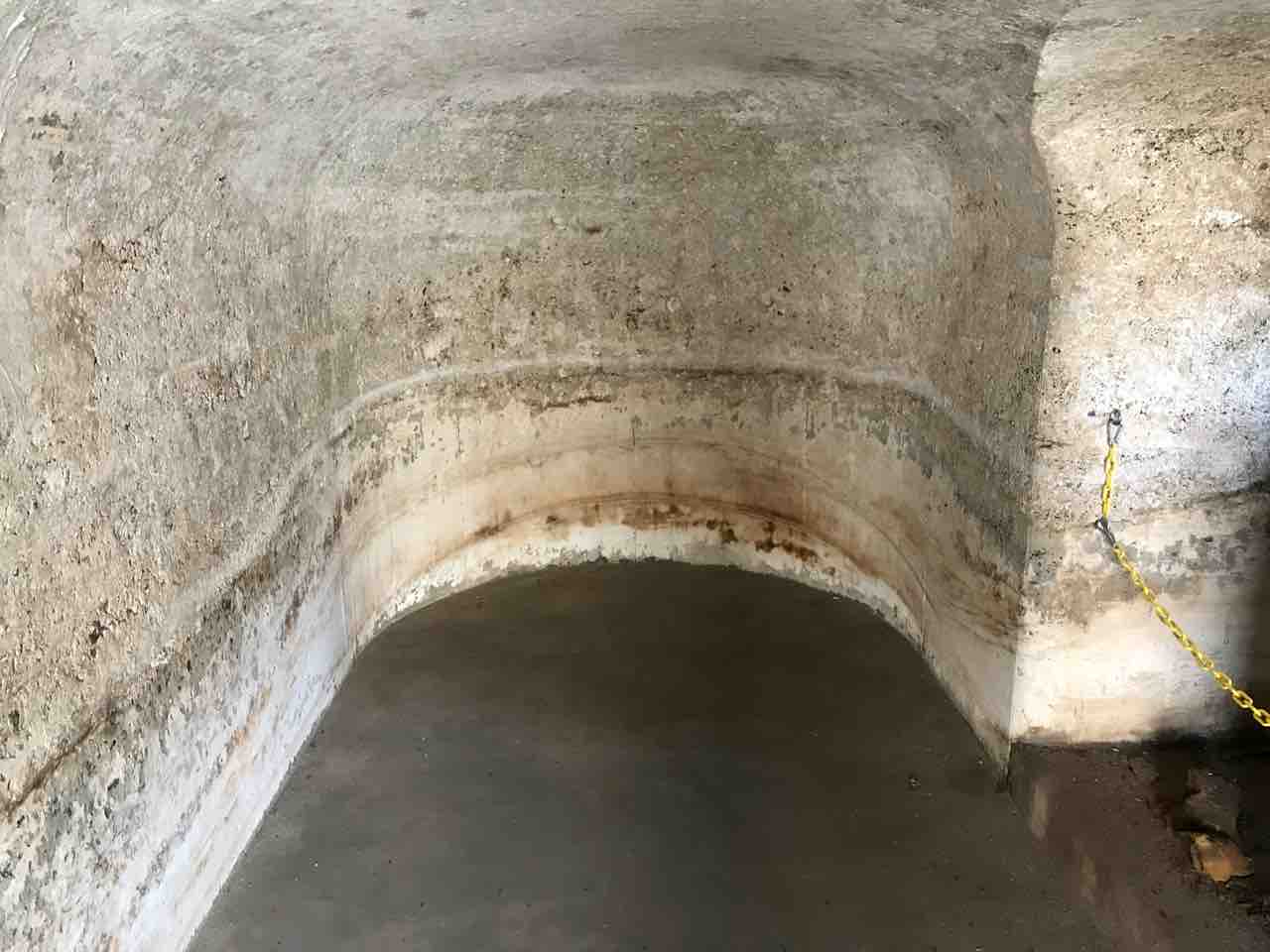 内部は2室に分かれ、脚壁から天井の半円形アーチまでコンクリートの一体構造になっているらしく、鉄筋などが無いそうです。