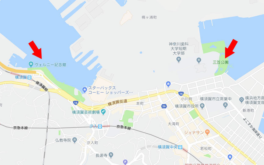 横須賀の中心部では「ヴェルニー公園」「三笠公園」の2か所。