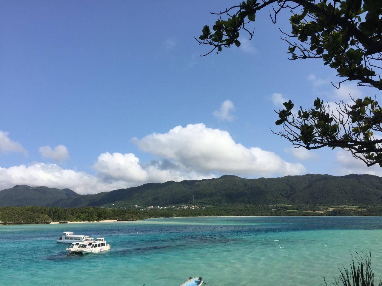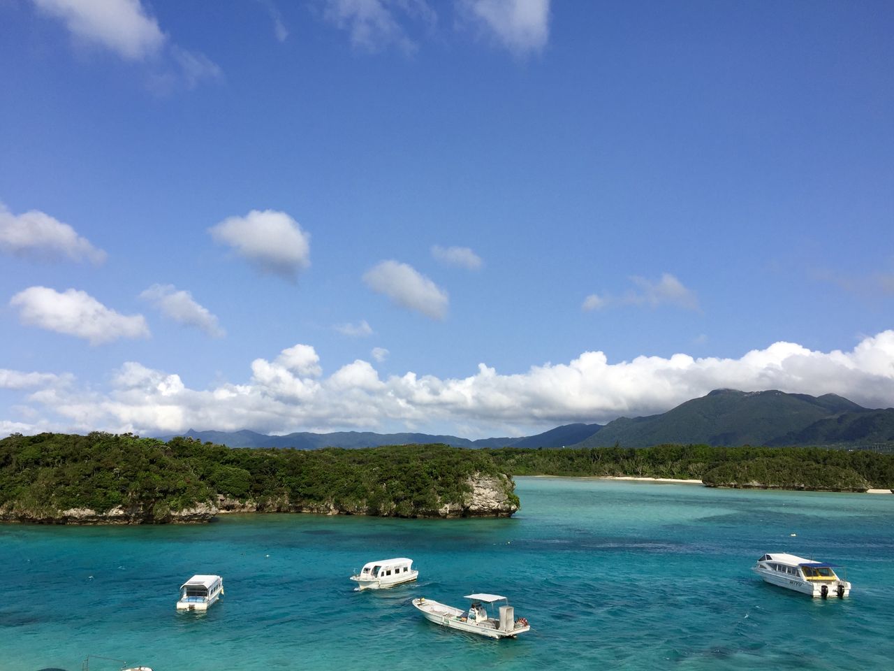 この川平湾は船に乗って海底の珊瑚礁や魚などを観察したり、レジャースポーツが盛んなところらしく、船がたくさん停泊している。
