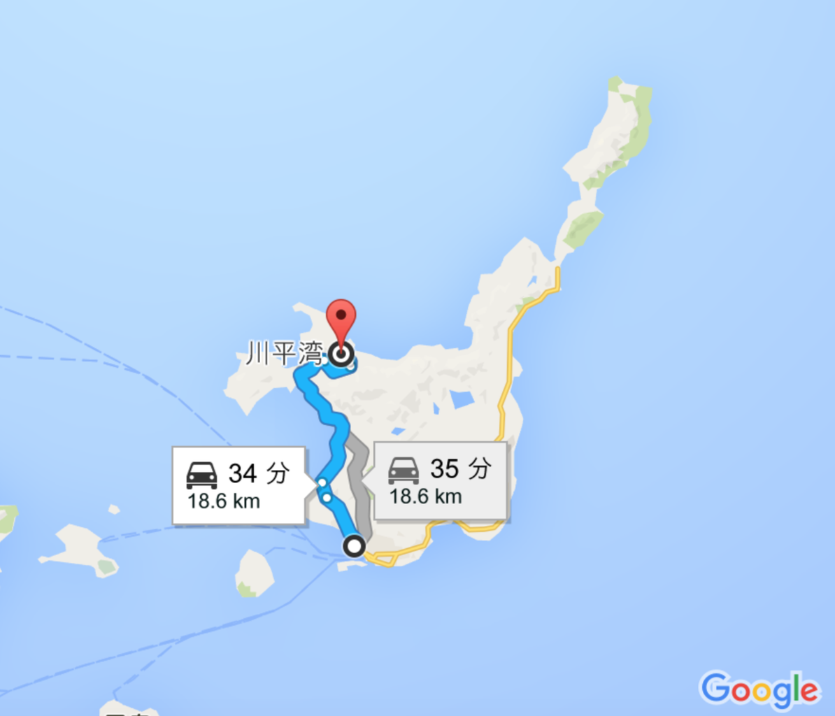 ホテル→川平湾までだいたい30分ちょっと。