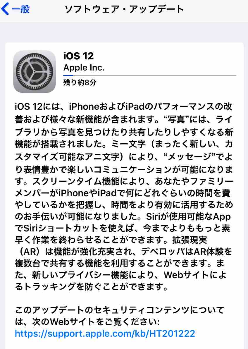 さっそくバージョンを確認すると「iOS 12.0」の文字が。