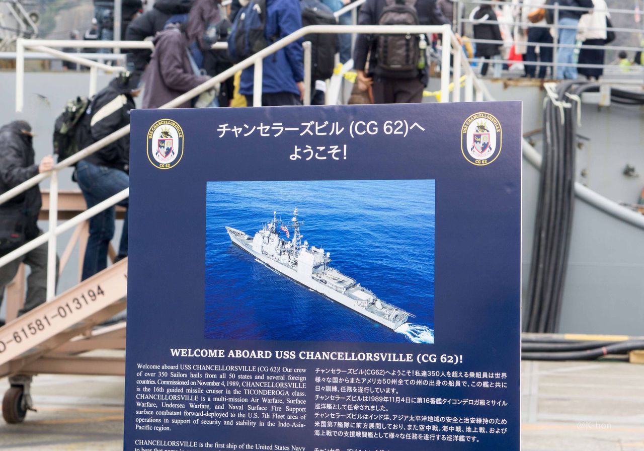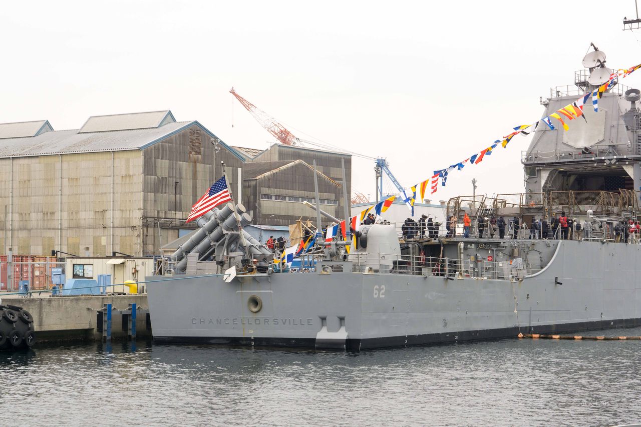 今回見学できるのがアメリカ海軍のミサイル巡洋艦「チャンセラーズビル(CG 62)」です。