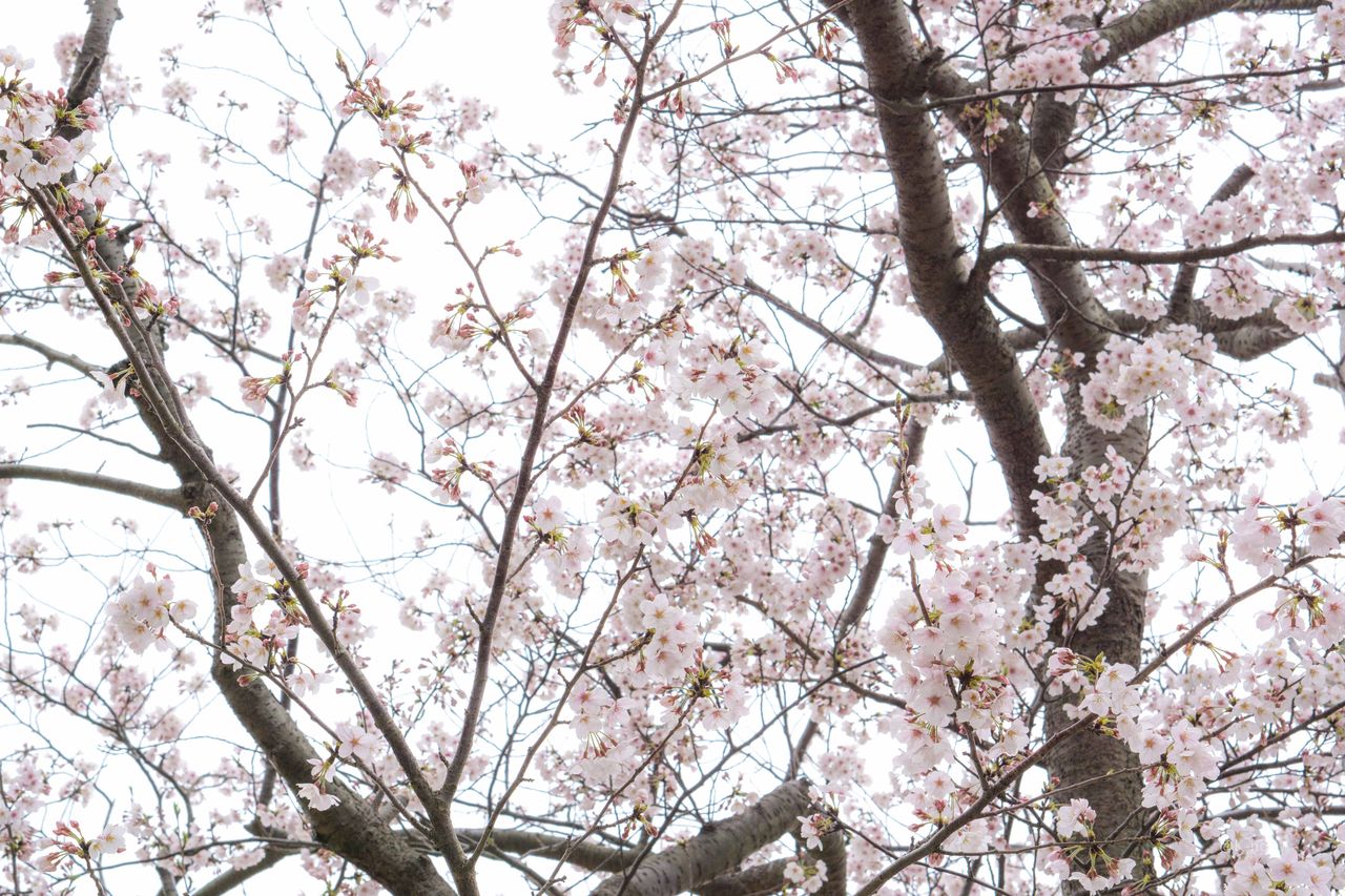 あいにくの曇り空ですが、桜が咲き乱れています。