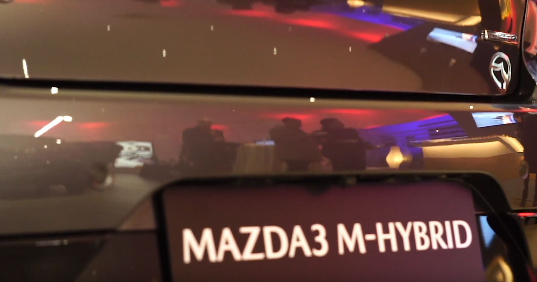 マツダの新型MAZDA3に関するイベントの様子を映しています。