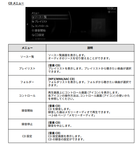 機能の詳細は「CDを挿入するだけで楽曲をマツダコネクト本体に取り込む(リッピング)する」ことができます。