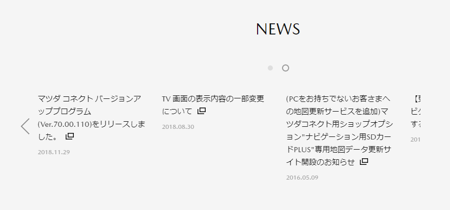 他にも過去のバージョンリリースに関わるページもすべて削除。画像引用元:マツダ|MAZDA CONNECT|オーナー/カーライフ(外部リンク)