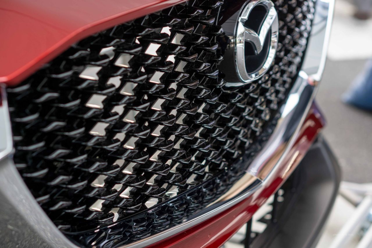 マツダの新世代SUV「CX-30」のフロントバンパー展示の写真です。