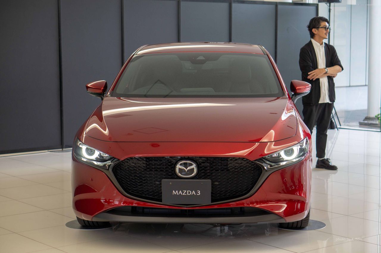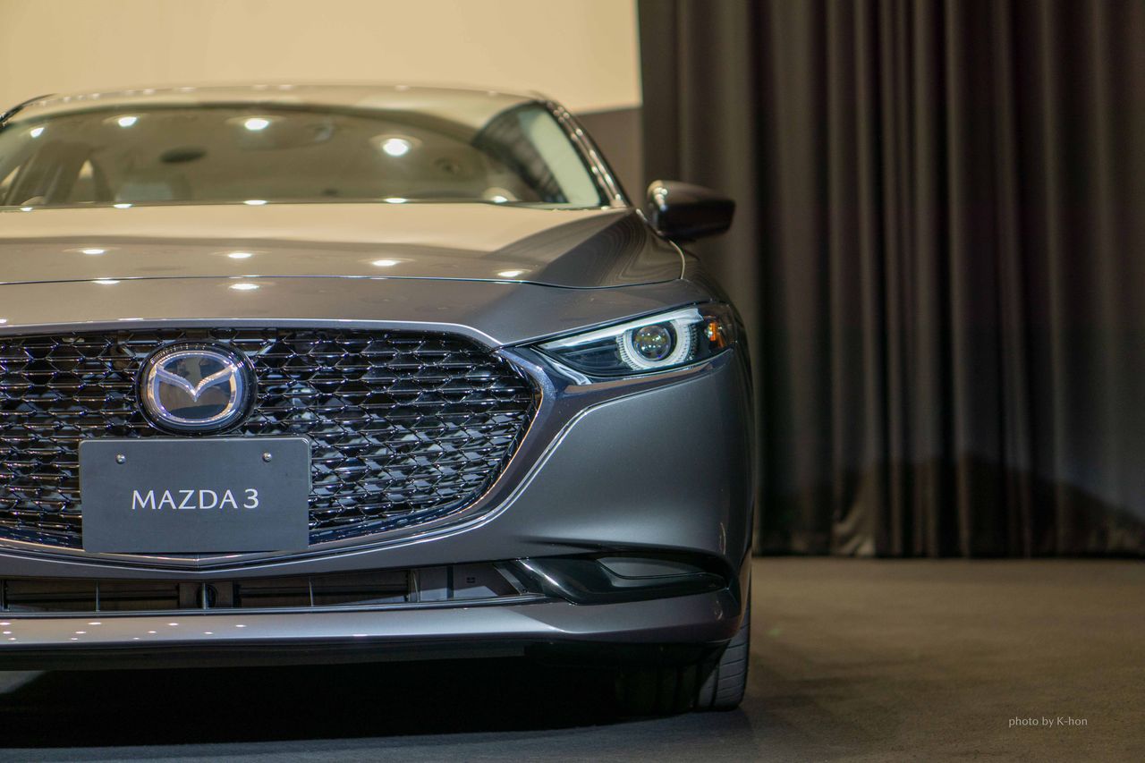 さて、さらに奥へ進むと、さっそく新型MAZDA3がお出迎え。