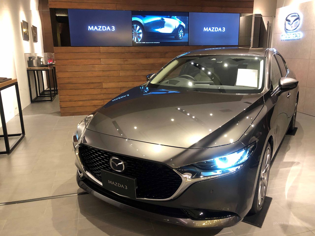 展示されている車両は「MAZDA3 FASTBACK(ソウルレッドクリスタル)」と「MAZDA3 SEDAN(マシーングレー)」の2種類です。