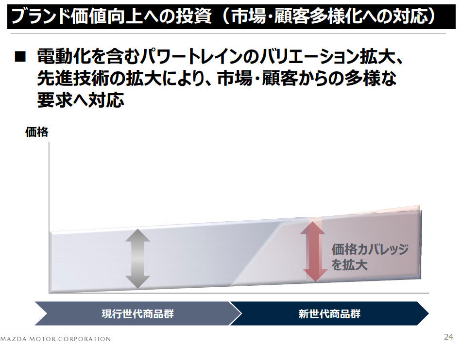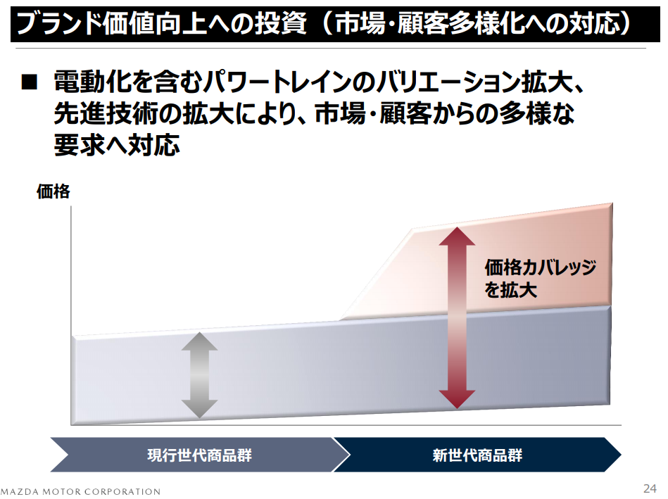 価格カバレッジを拡大し、市場や顧客の多様なニーズに対応するというものです。画像引用元:【MAZDA】2019年5月9日通期決算プレゼンテーション資料(PDF)(外部リンク)