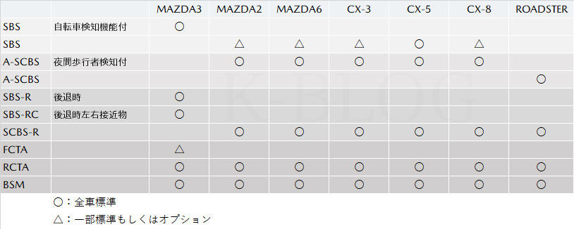 唯一SBSが全車標準なんですねぇ(CX-8もベースグレード以外は標準ですが)