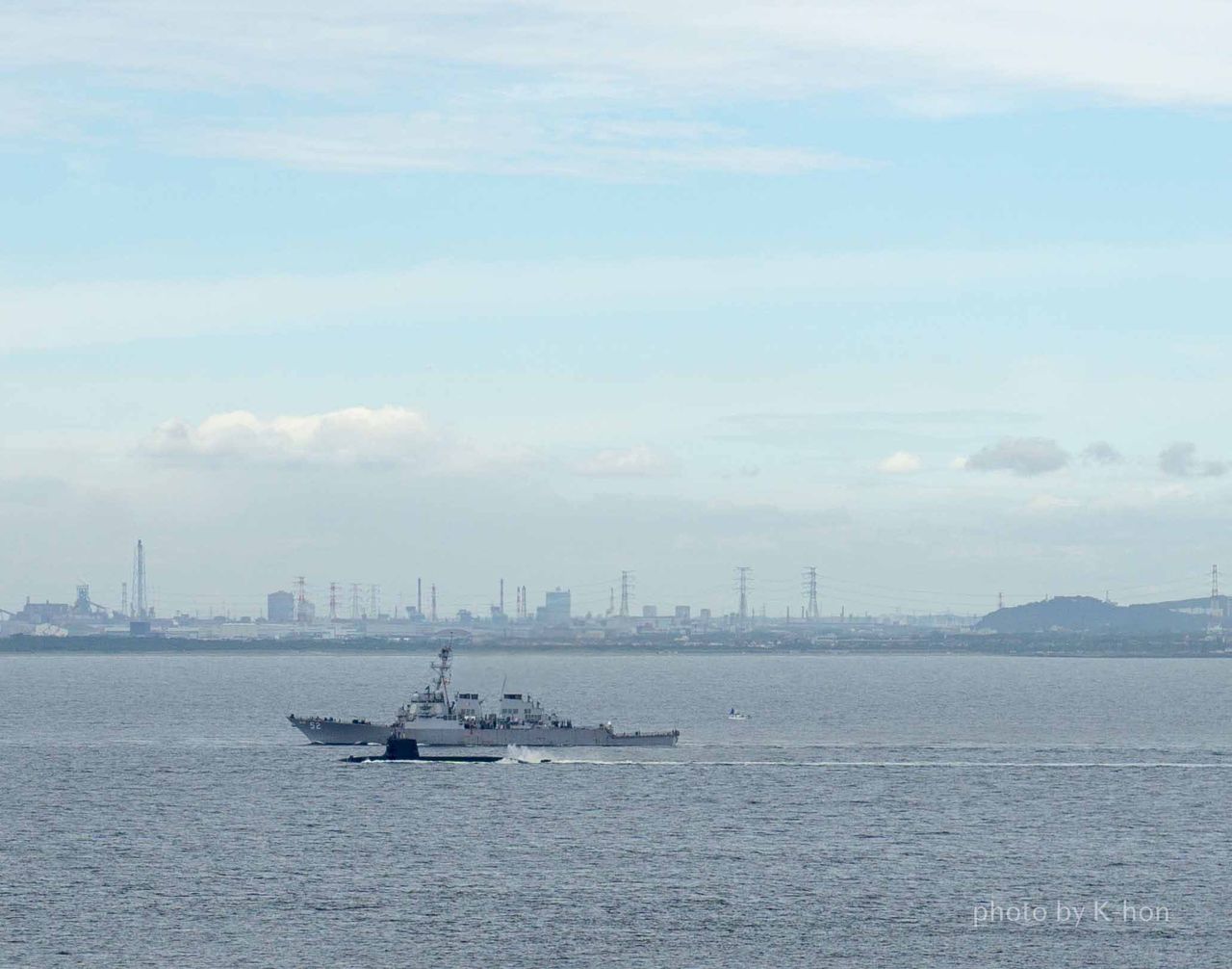 ぼーっと海を眺めていると潜水艦と艦艇を見かけました。