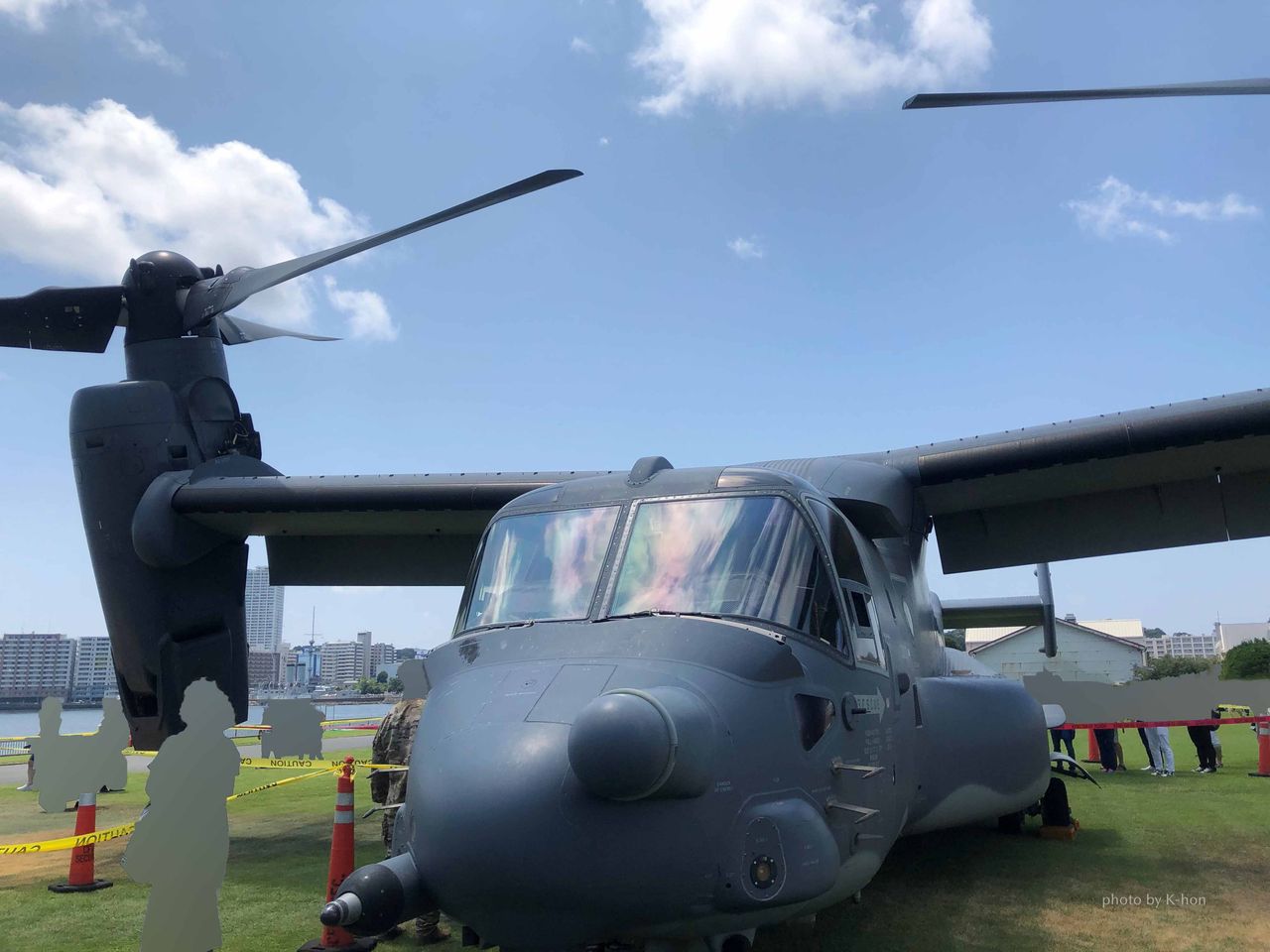 芝生の広場にオスプレイが展示されていました。