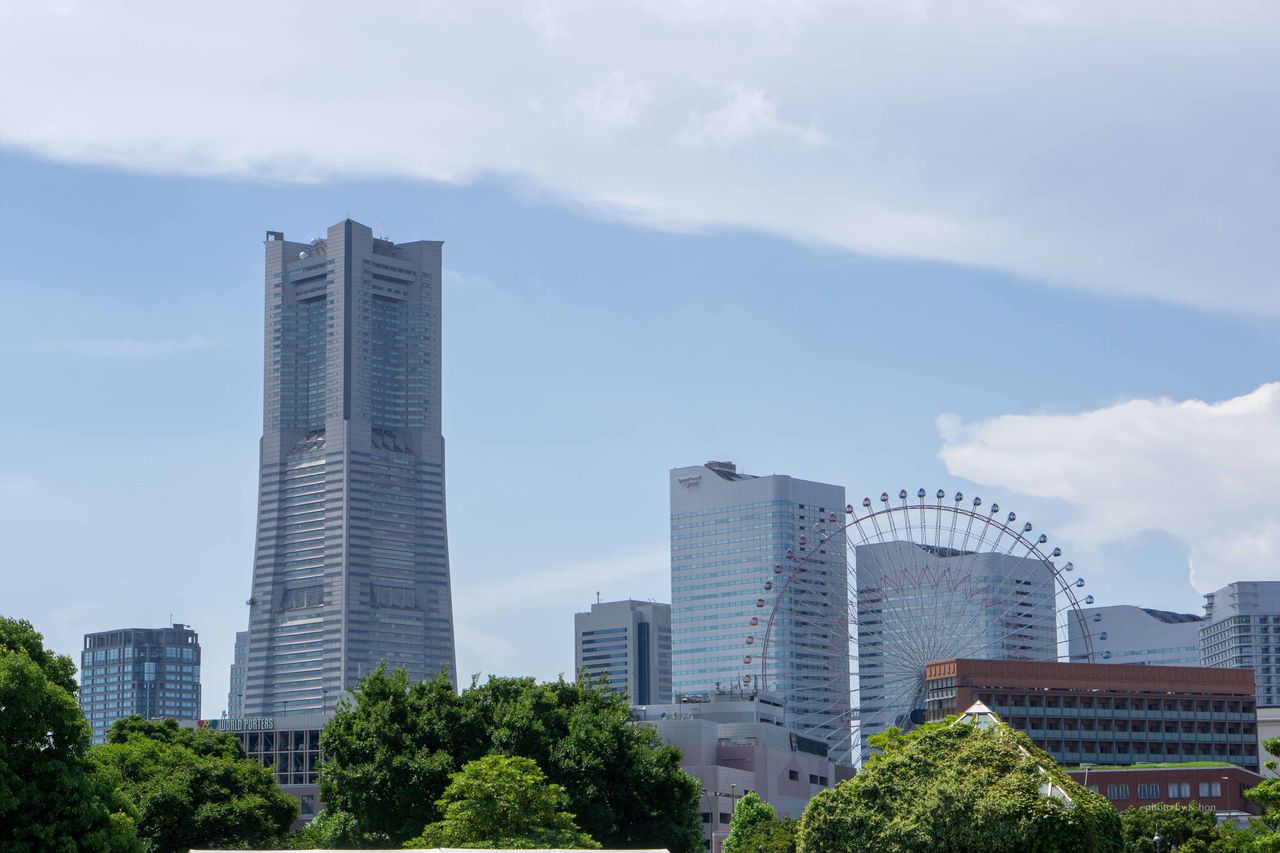 陸へ目を向けるとランドマークタワーや観覧車も観ることが出来ます。