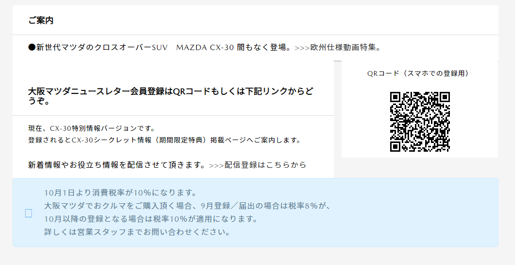 私は以前から登録させて頂いていたので、一足先に見させていただきました。画像引用元:大阪マツダ オフィシャルサイト(外部リンク)
