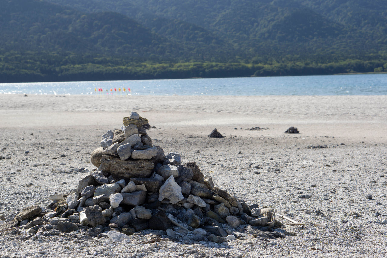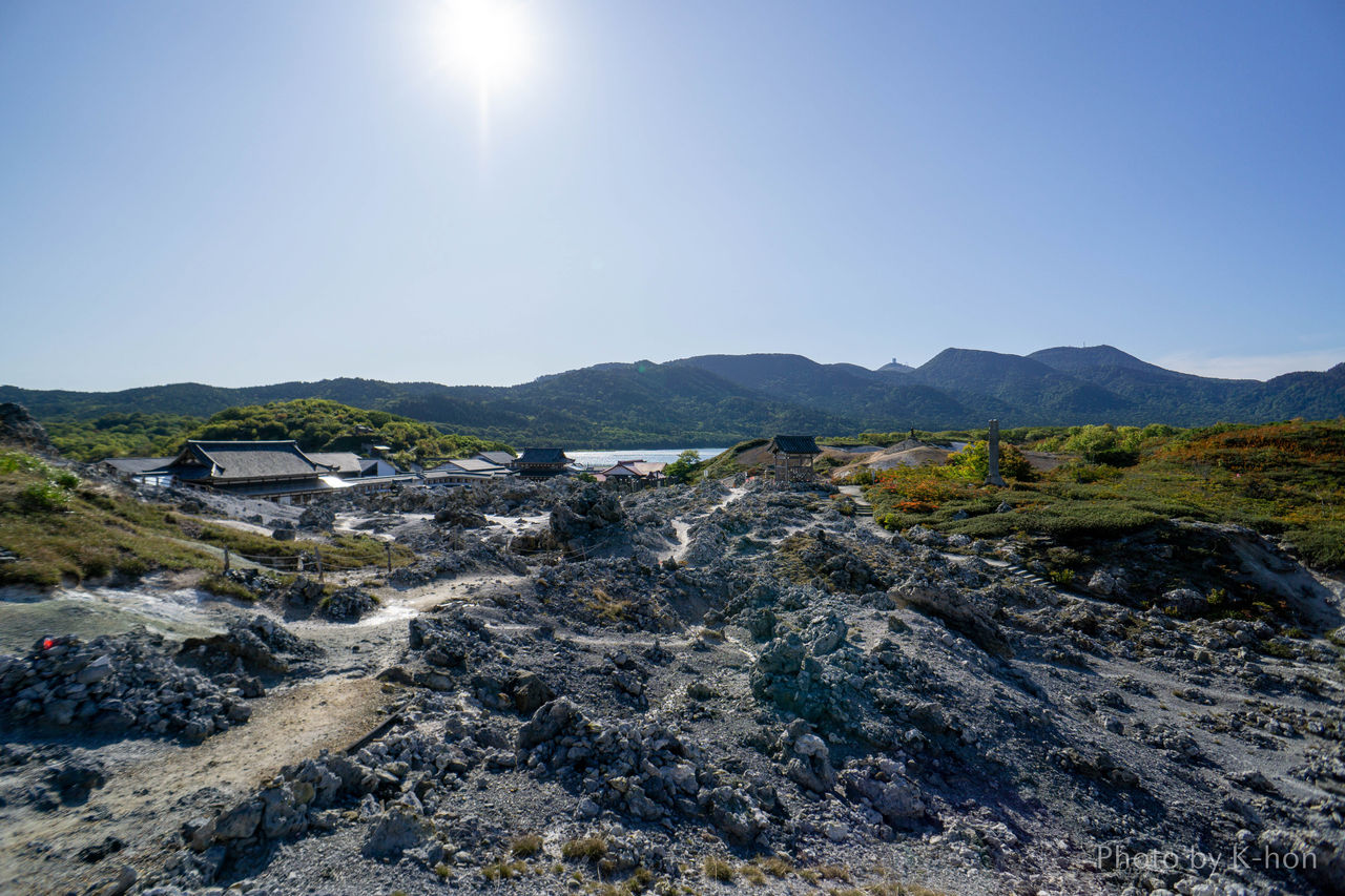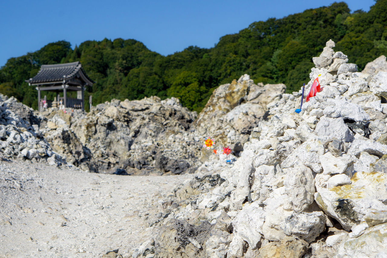 火山ガスの噴出する山肌の一帯は地獄、湖の白浜は極楽になぞらえられ、信仰と祈りの場として伝えらえて来たそうです。