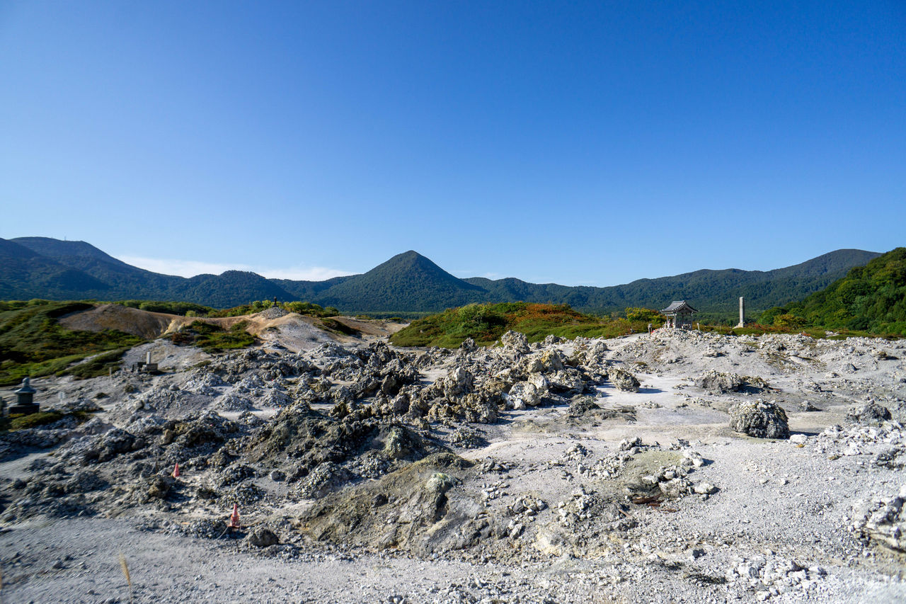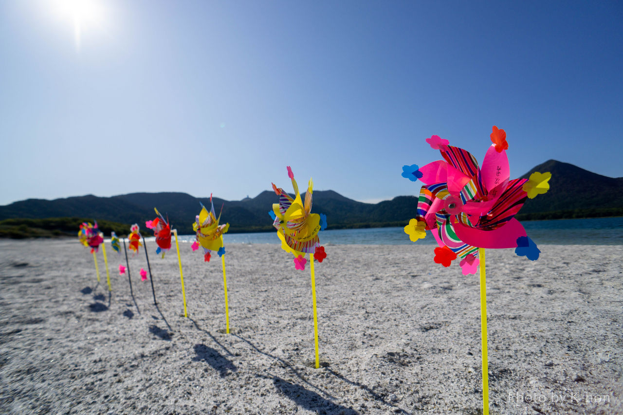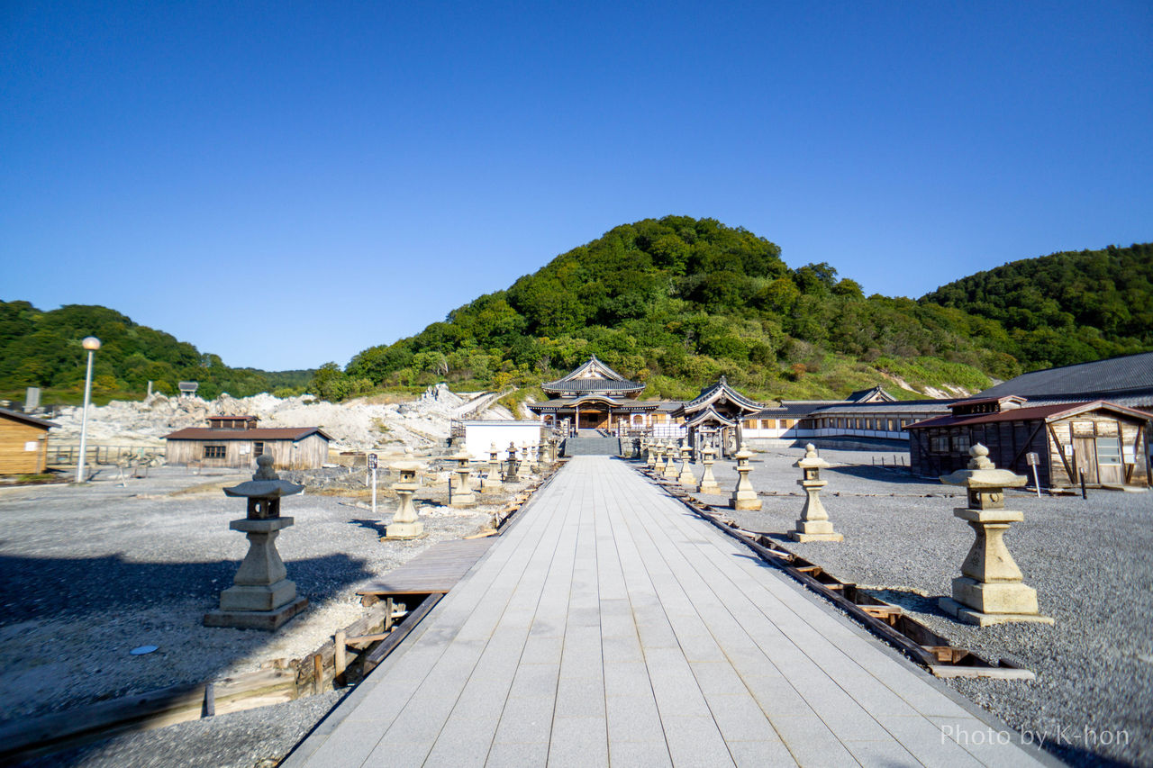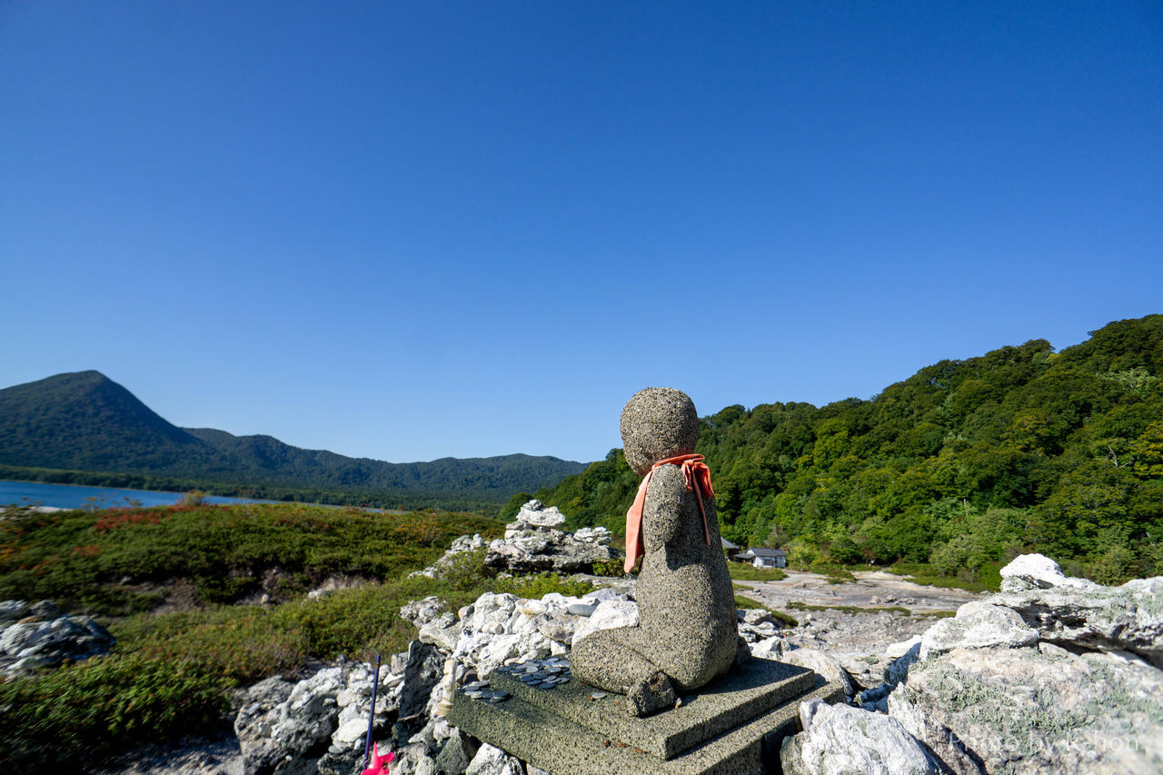 火山ガスの噴出する山肌の一帯は地獄、湖の白浜は極楽になぞらえられ、信仰と祈りの場として伝えらえて来たそうです。