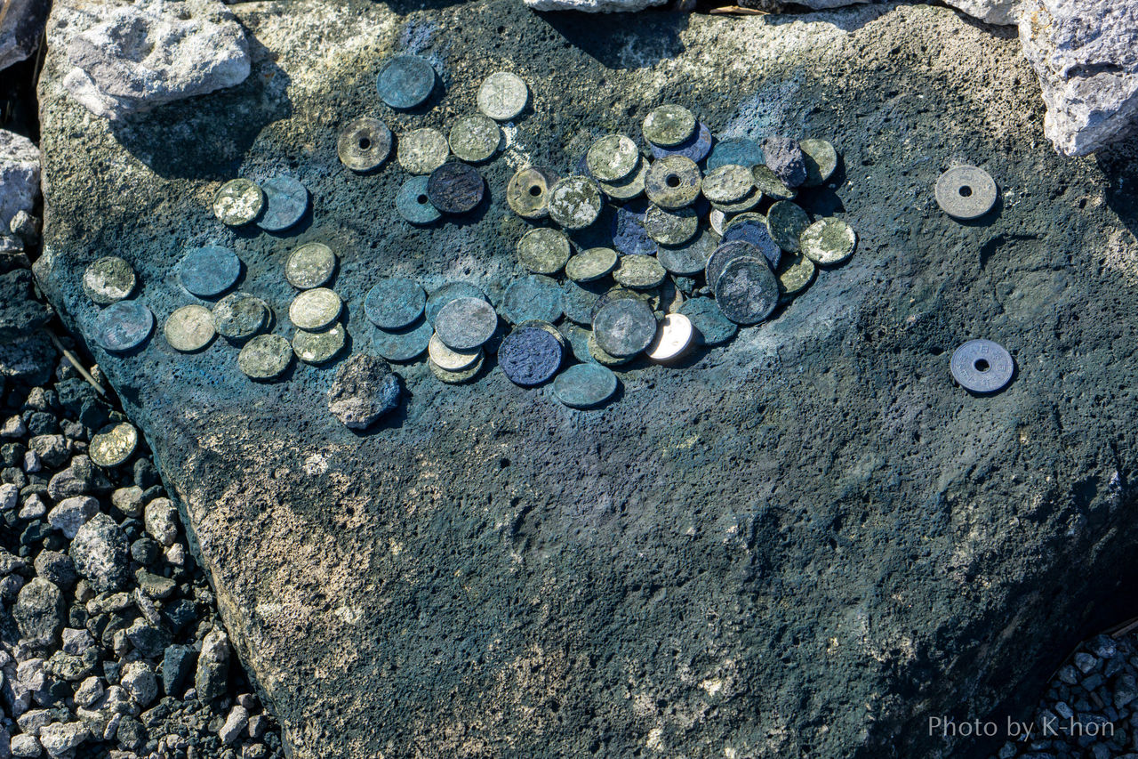 お地蔵様の下に置かれているお賽銭をみると、どれも錆びています。