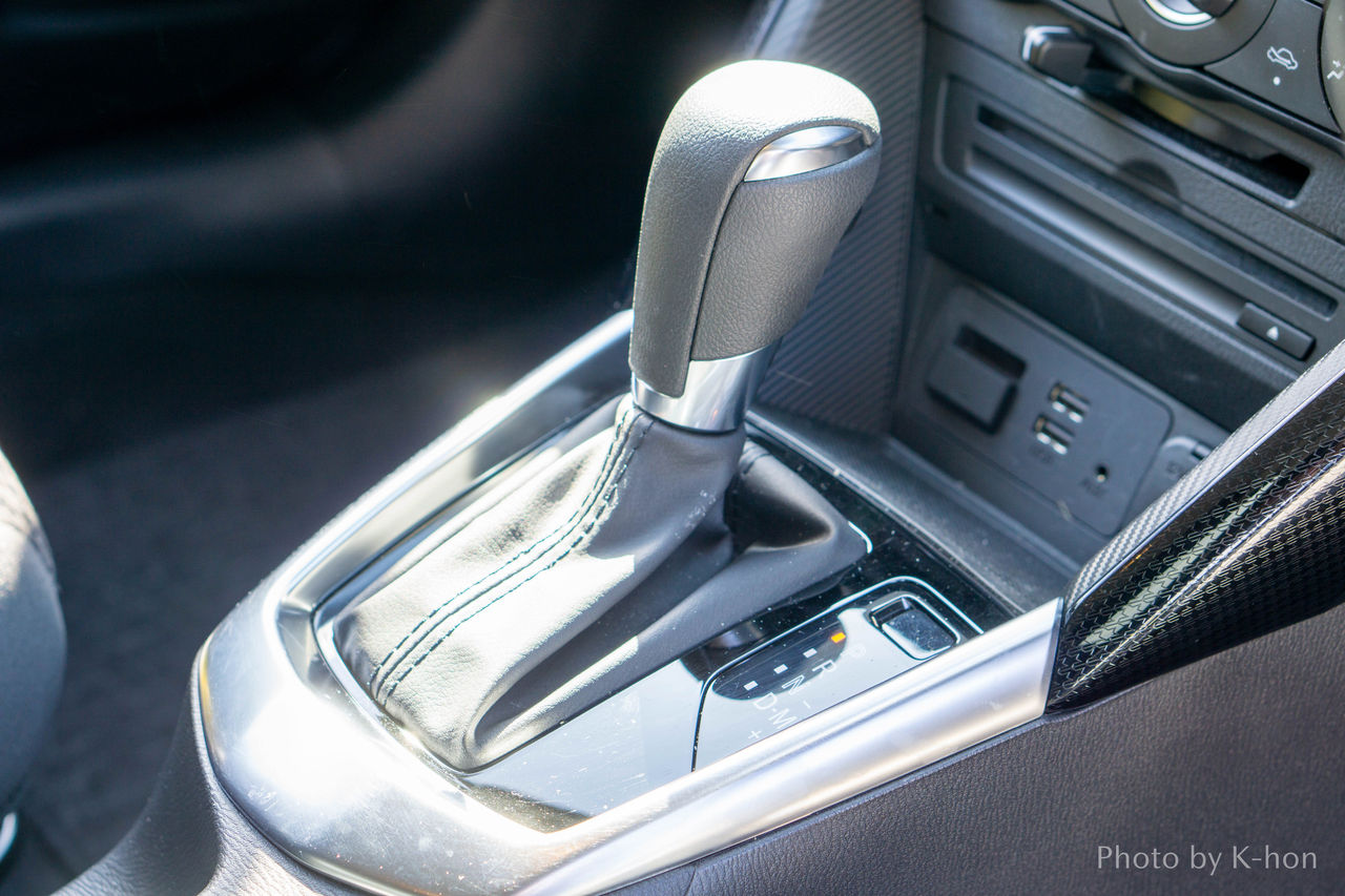 レンタカーグレードだとフニャフニャな操作感だったシフトレバー。