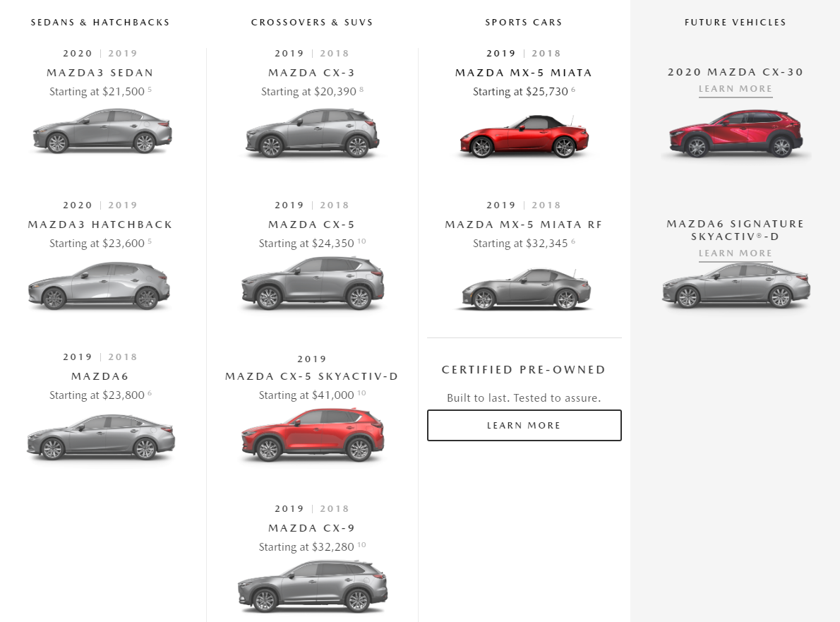 トップページにはマツダのSUV達が並んだ画像が掲載されています。